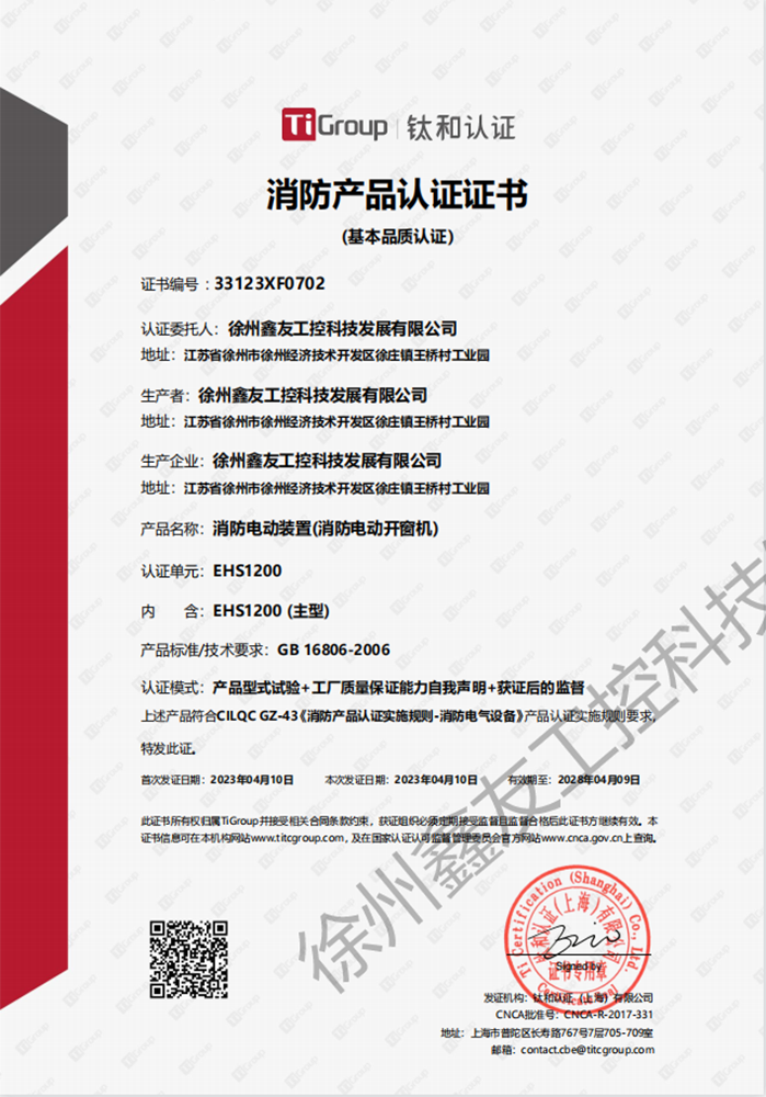 徐州鑫友工控科技發展有限公司成立于2008年,占地31600平方米,全資子公司:江蘇良紫工程科技有限公司,旗下 有“鑫友”及“MASTER.W主人窗控”兩個品牌系列,公司全面貫徹執行IS09001:2015質量管理體系標準,產品順利通過歐盟CE認證和中國***消防電子產品認證,通過可燃性粉塵環境下、爆炸性環境下防爆合格產品檢驗。排煙天窗整窗通過***消防產品質量監督檢驗中心檢測。先后獲得多項******及榮譽證書。集研發、加工、生產、制造、銷售、安裝及售后于一體,是一家高起點、研發能力強的專業智能化企業。